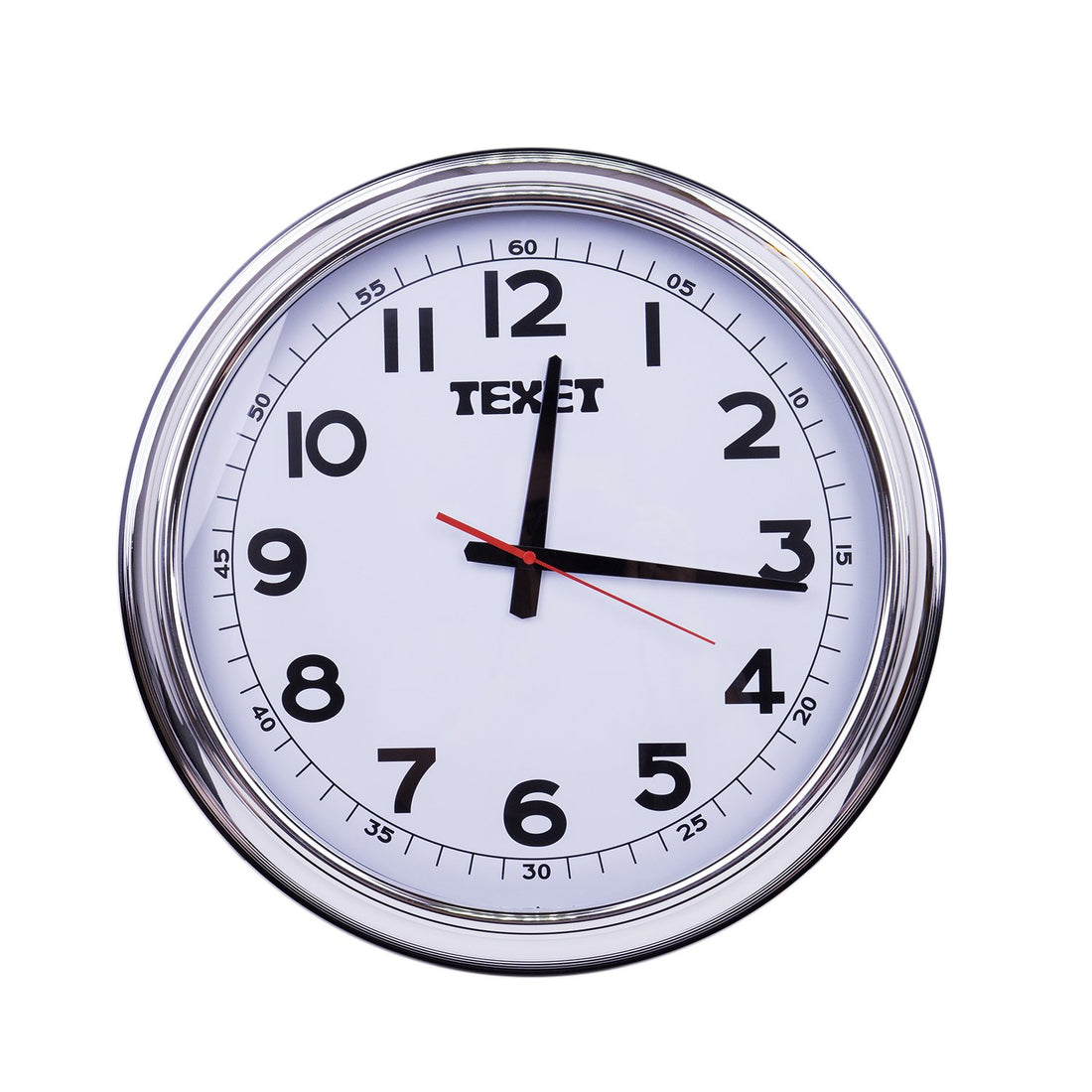 Battery powered quartz mechanism Large chrome wall clock large easy to see numbers Dims: 455...