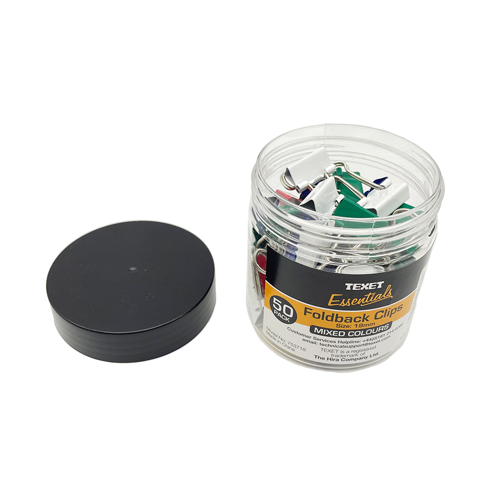 Foldback Clips 19mm Pack 50 Assorted Colours
