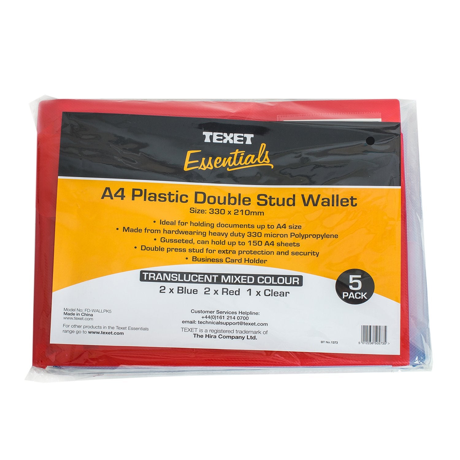 A4 Double Stud Wallets Assorted Colour, Pack of 5